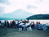 自然の中で食べる食事はなぜかおいしいもの。富士山をバックに山中湖畔でのバーベキューもセッティングします。
