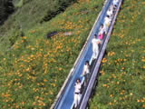 横手山スカイレーター…志賀高原で最も標高が高く眺望のよい横手山頂をスカイレーター(動く歩道)と