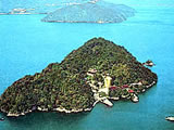 周囲2km、面積0.14平方キロメートル、花崗岩で成り、全島緑樹におおわれ、古来より人々の厚い信仰を集める島。